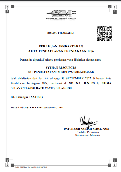 No 26A, Jln Ps 9, prima Selayang,68100 batu Save selangor